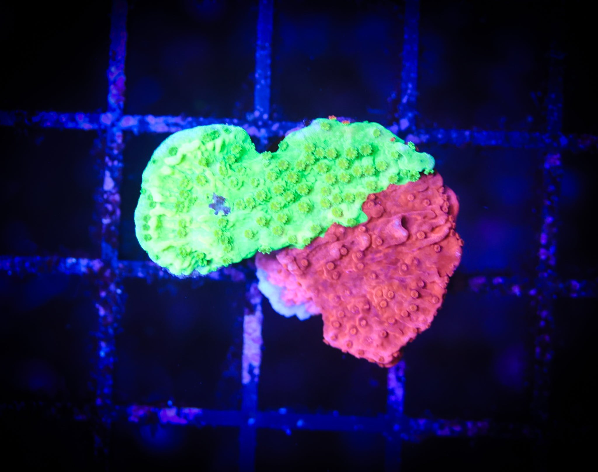 Montipora are a genus of small polyp stony corals found in reefs throughout the world. Montipora are some of the most diverse SPS corals available. They come in a huge variety of growth forms such as plating, encrusting, and branching as well as just about every color imaginable. Montipora benefit from clean water, stable conditions, bright light, and strong flow.